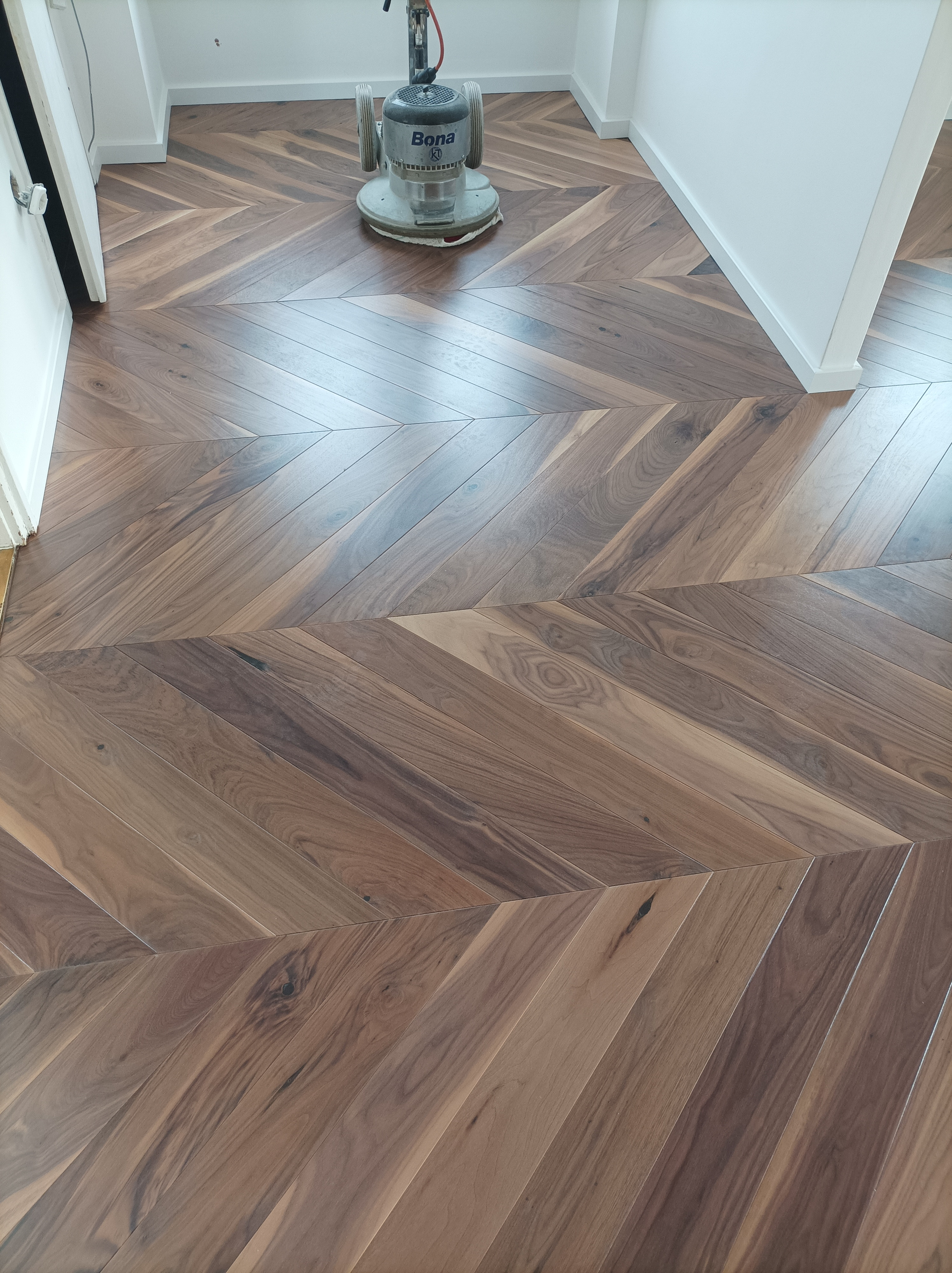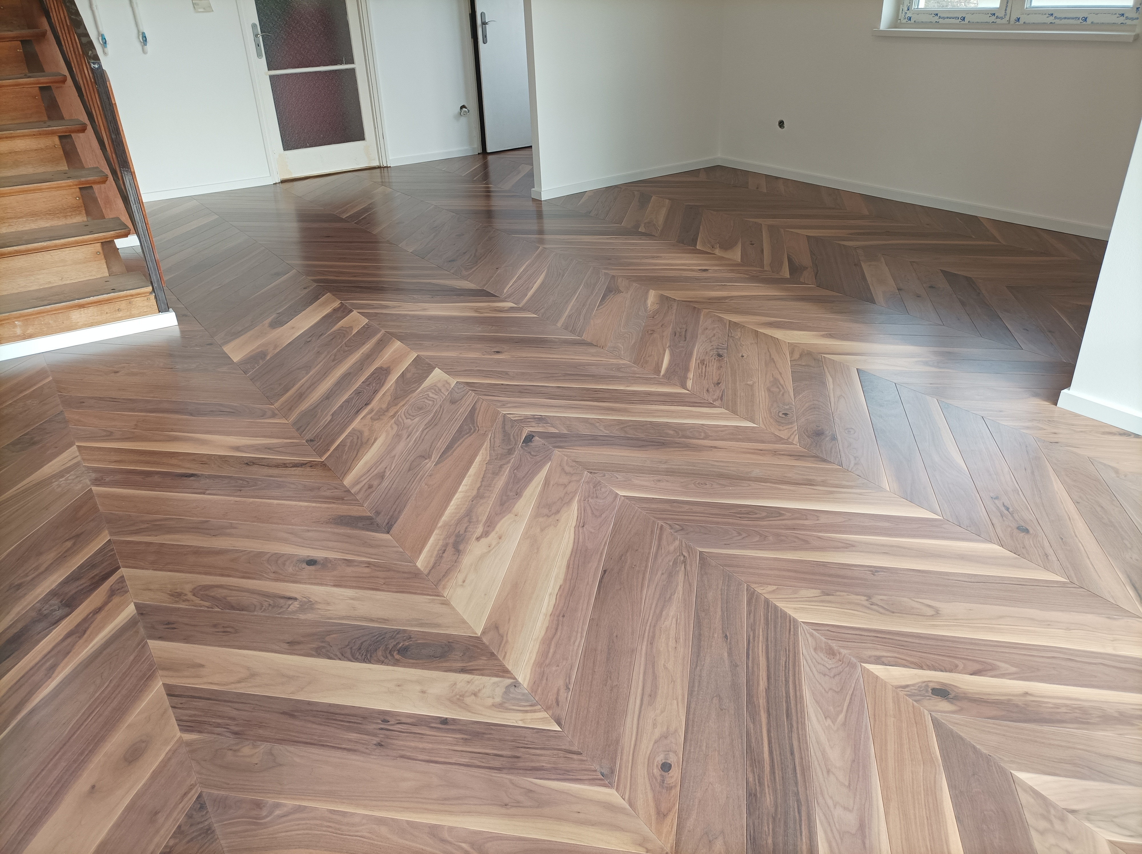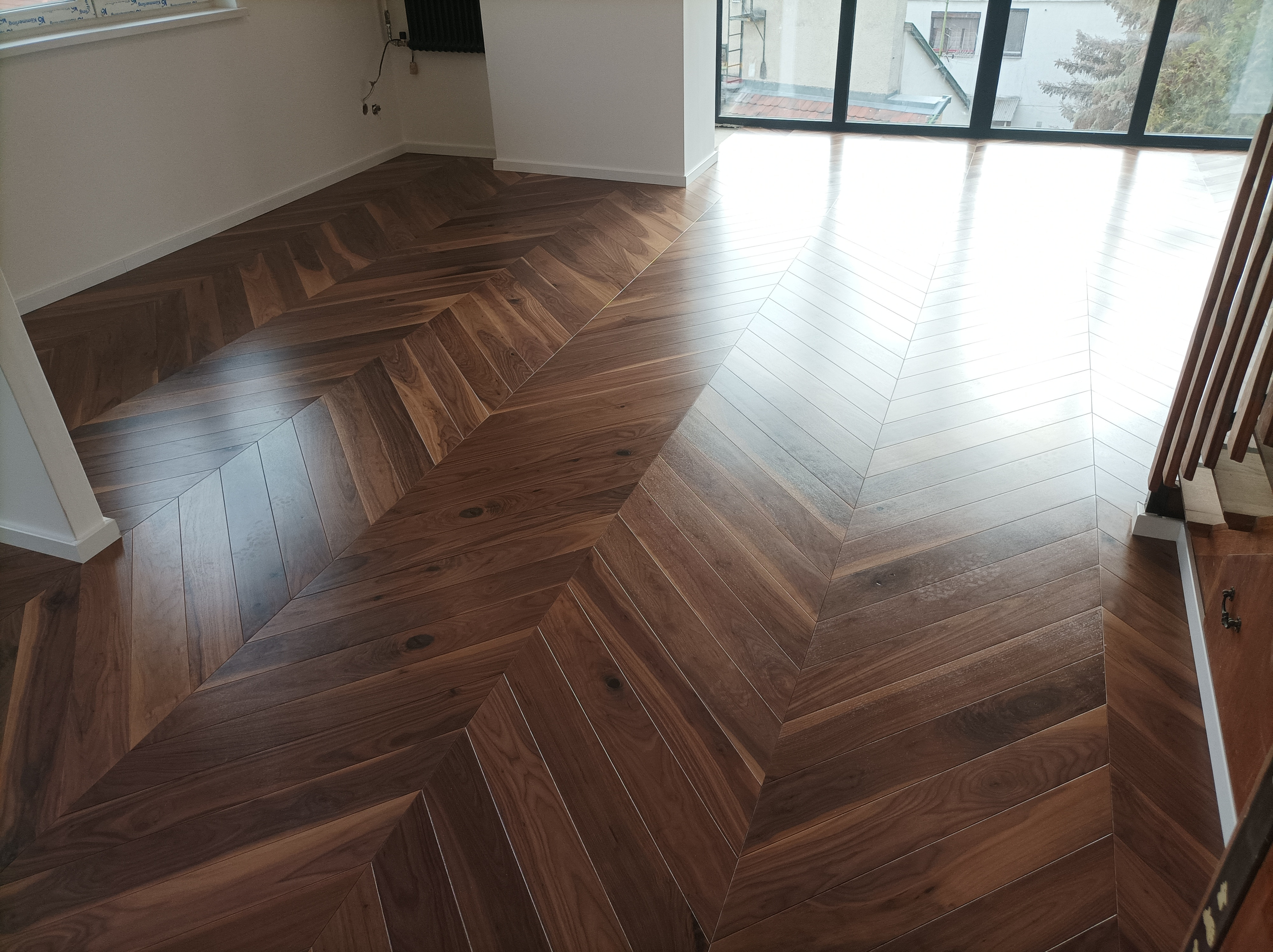 Olajozott készparketta halszálka mintába rakva