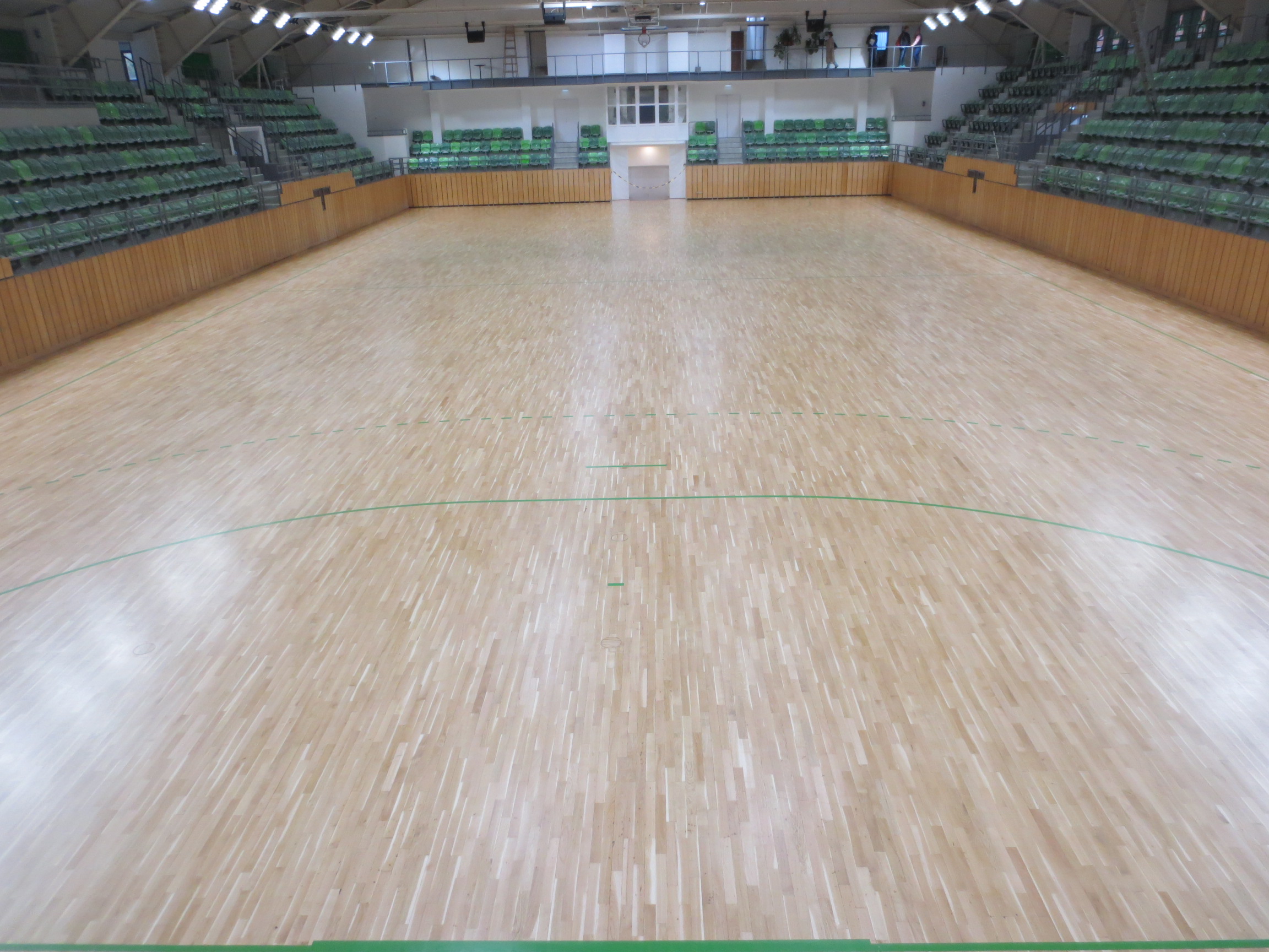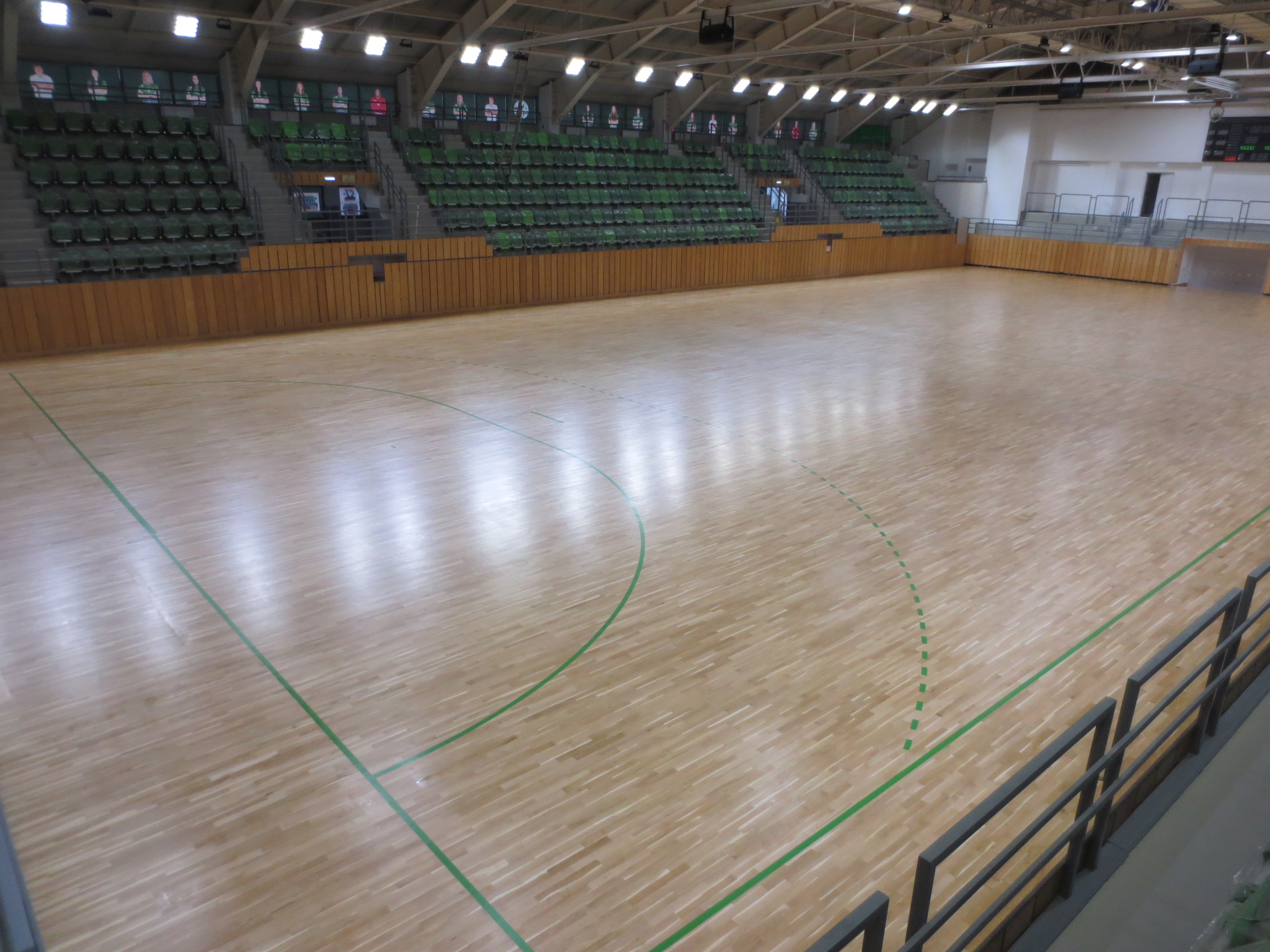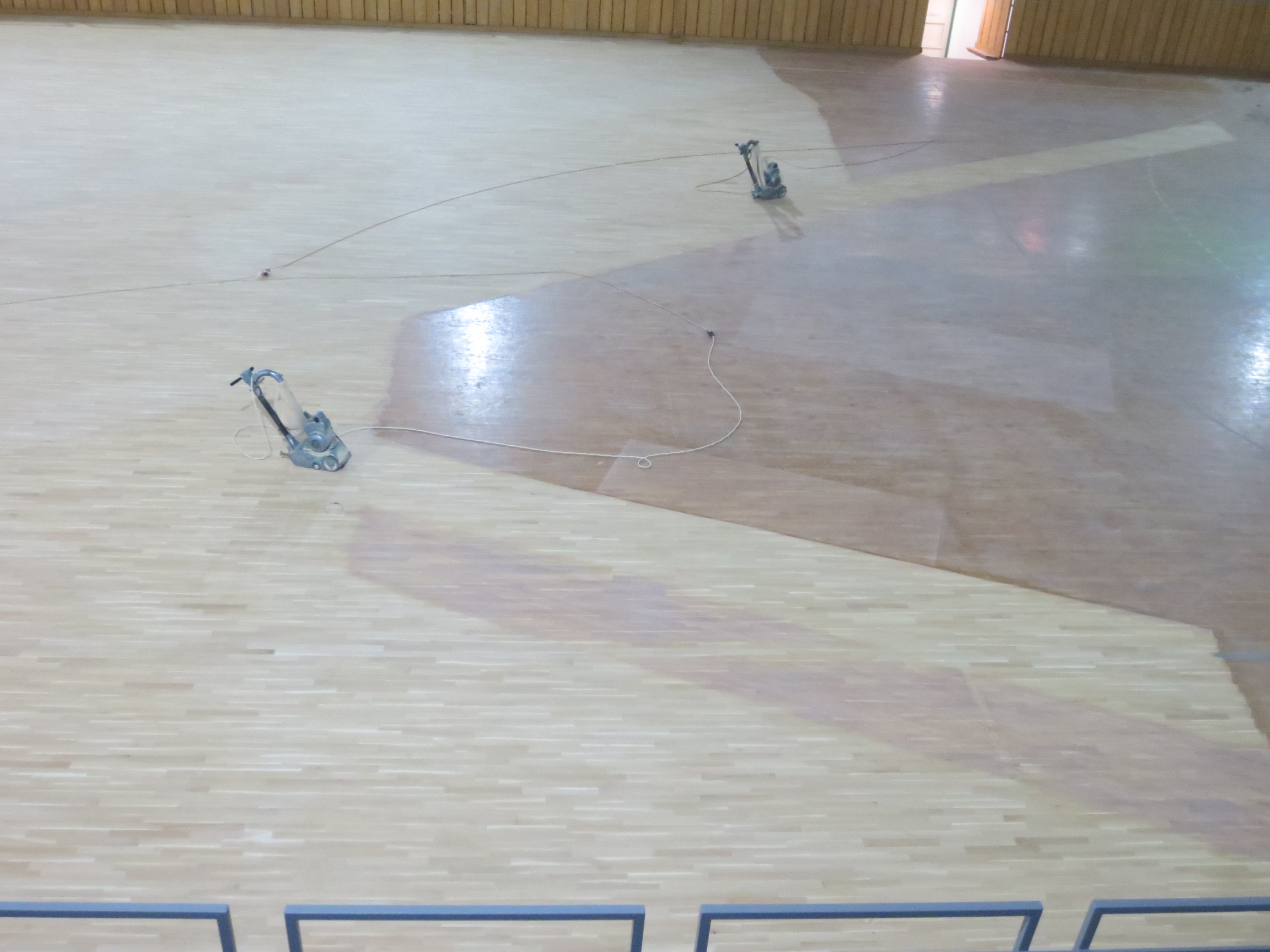 A csiszolást követően a parkettát nagy terhelésre tervezett, sportlétesítményekben alkalmazott lakkrendszerrel kezeltük. Ez a felületkezelés kiemelkedő kopásállóságot, biztonságos tapadást és hosszú élettartamot biztosít, miközben megőrzi a fa természetes megjelenését. A felújítás eredményeként a pálya ismét megfelel a sport- és rendezvényhasználat követelményeinek.