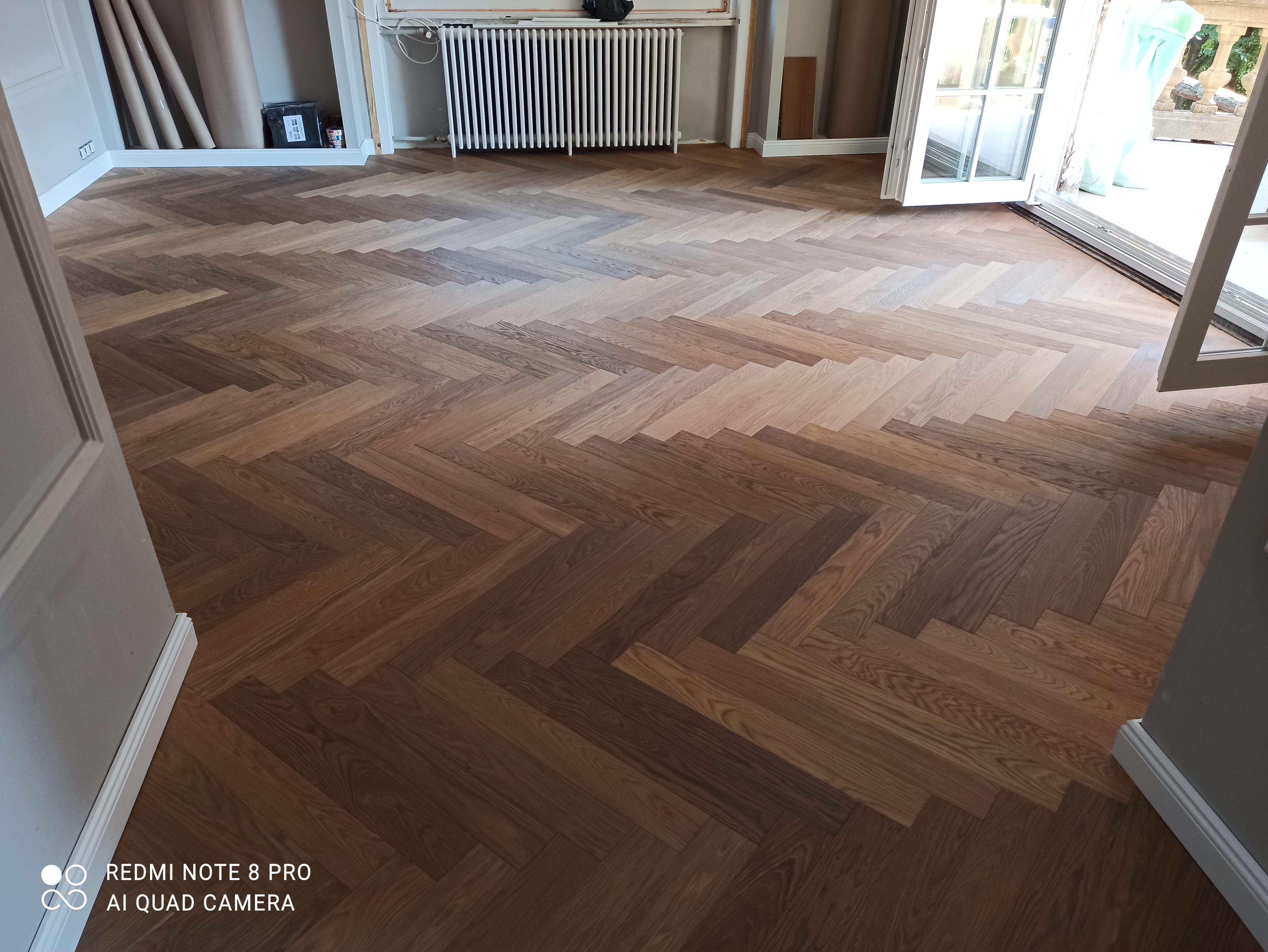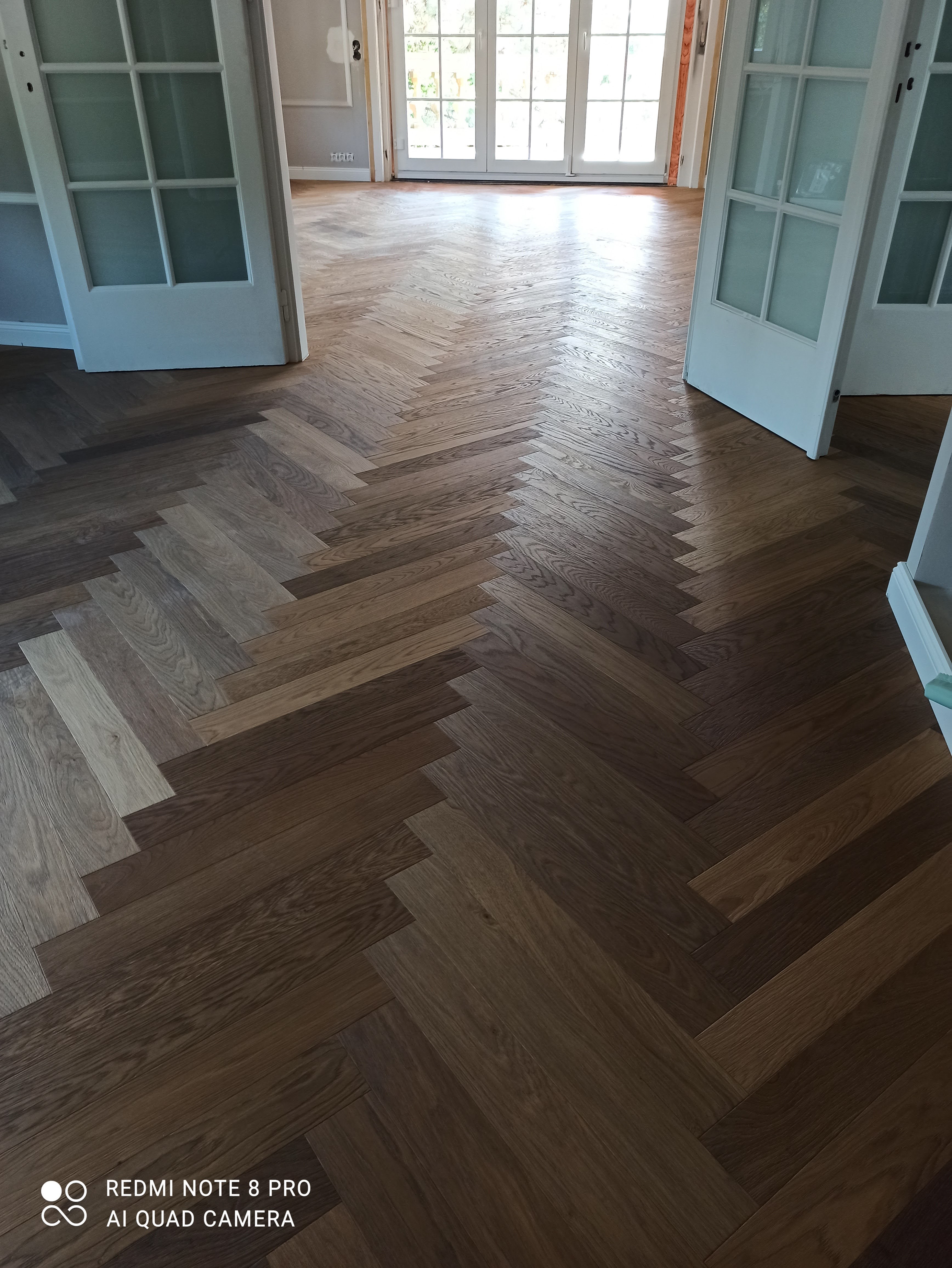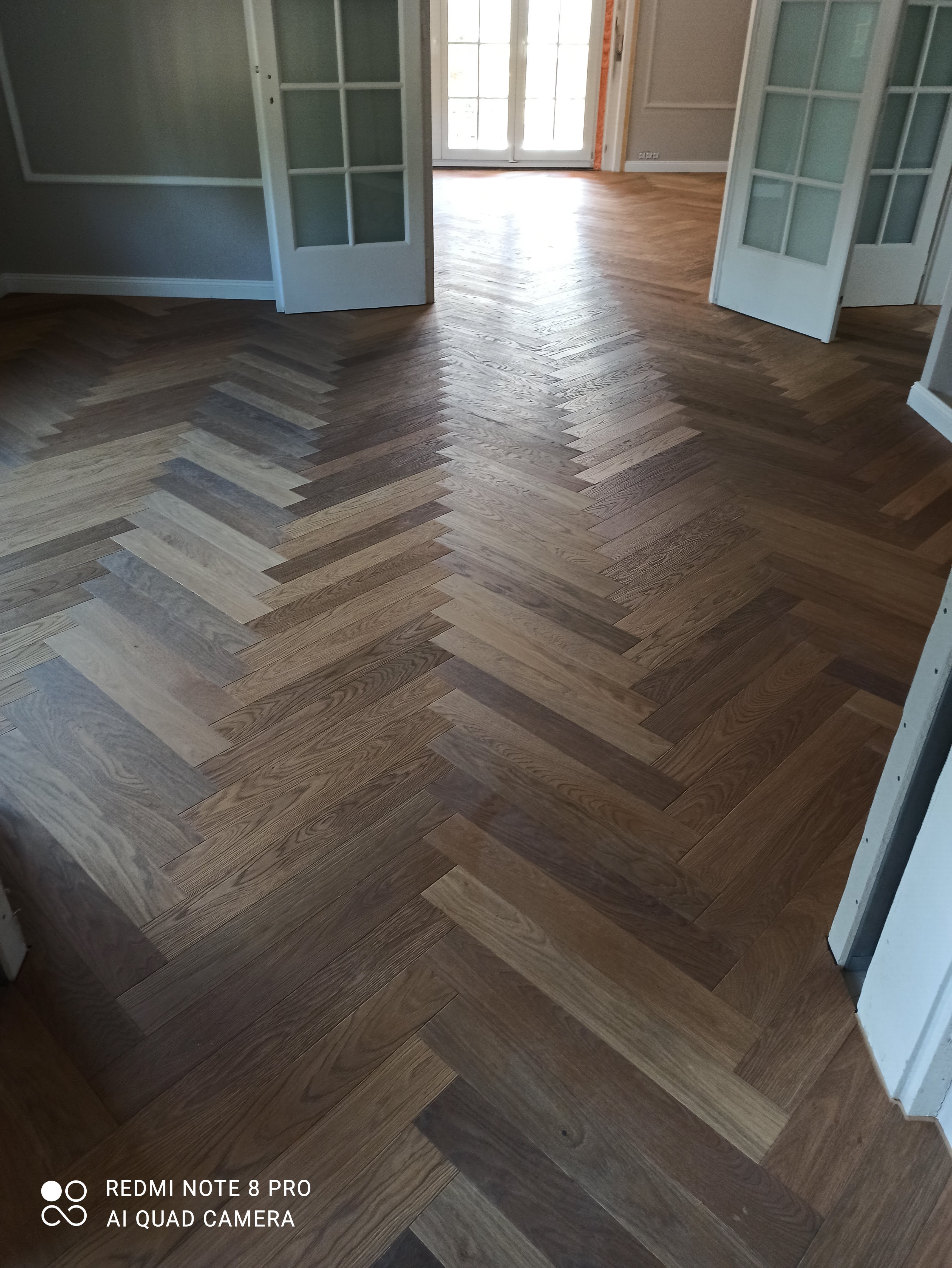 Intarzia parketta lerakása, csiszolása és lakkozása